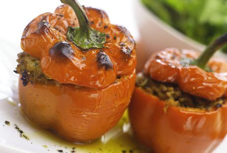 Priprema: Sitno iseckajte praziluk i bukovače, a paradajz isecite na kockice. Izdinstajte beli luk i slatku papriku, pa dodajte prethodno skuvano i samleveno žito. Dodajte začine po ukusu, malo bosiljka i pripremljenom smesom napunite paprike. Složite ih u pleh za pečenje, prekrijte folijom i pecite 30 minuta na 180 stepeni.