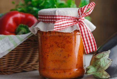 Kada je ajvar kuvan, razlijete ga u tegle i vratite još jedan sat u rernu da se odozgo stvori korica. Još vruće tegle zatvorite.