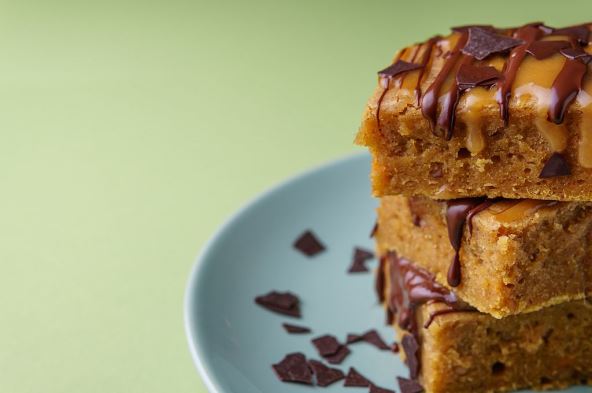 Sačekati da se kolač ohladi i iseći na štangle ili kocke i preliti ostatkom preliva.