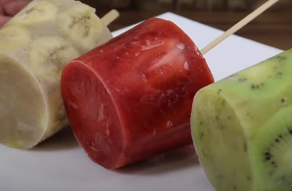 Oljuštite kivi pa izmiksajte zajedno s 20 ml vode i medom. Drugi kivi iseckajte na kolutiće i poređajte ih u plastičnu čašu. Sipajte smesu koju ste umutili pa u sredinu stavite drveni štapić. Stavite u zamrzivač i prvi sladoled je gotov! Sladoled s jagodama i bananom pripremate na isti način, samo što u njih ne stavljate med. Sladoledi su spremni za jelo kad se stegnu u zamrzivaču.