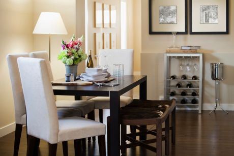 S obzirom na to da nemate prostora za garderobu, plakar treba da postavite u dnevnu sobu, kao i da maksimalno iskoristite prostor oko TV-a. Da bi plakar što manje vizuelno opteretio prostor, vidne površine treba da su što sličnije boji zida, obložene delimično peskiranim ogledalom, istim tapetama kao na zidu i sl. U hodniku, u delu ka kupatilu, možete smestiti garderober pune dubine, a duž hodnika prema sobama plitku dugačku komodu - cipelarnik. U prolazu ka kupatilu i kuhinji prostor kod dimnjaka možete iskoristiti za plitki plakar za kupatilske i slične potrebe.