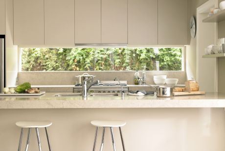 Da bi se dobio prostraniji izgled stana, trebalo bi skinuti vrata ka kuhinji i skratiti zid između vrata i postojećeg parapeta za pult do visine pulta. Tako biste dobili manje zatvoren pogled prema dnevnom boravku i iz njega prema kuhinji. Takođe, u ovoj situaciji bolje bi bilo da se premesti sudopera na bočni zid, tako da ispod pulta imate samo radnu površinu. Mogli biste spustiti plafon u širini dela koji pripada pultu, a niše na zidu pored bile bi dekorativni element koji vizuelno vertikalno ograničava taj prostor.