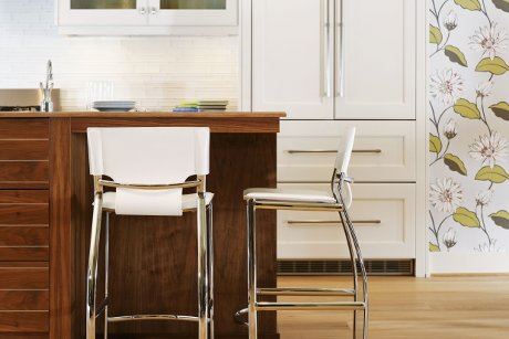Zid izmedju kuhinje i dnevne sobe je uklonjen, pa je kuhinja sada otvorenija i odvojena pultom od boravka.