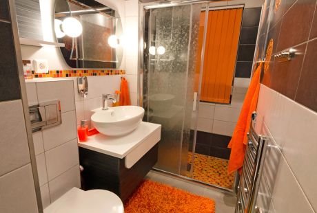 Postojeća kada je eliminisana i na njenom mestu je predviđena kabina s kliznim panelima. Kabinu morate praviti po meri jer standardne dimenzije ne mogu obezbediti da na postojećoj dužini zida smestite veš-mašinu i deo za tuširanje. Kabina je nešto manja, ali će vam obezbediti komfor i sve što ste zahtevali. Bojler koji je bio iznad kade sada je smešten iznad veš-mašine