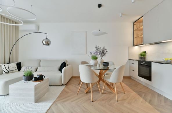 Za razliku od hladnih, sterilnih nijansi, topla bela poput slonovače donosi bezvremenu eleganciju. U kombinaciji sa kontrastnim detaljima od drveta, mat završnicom na zidovima i teksturama poput kamena, somota i tamnog drveta, prostor dobija sofisticiran izgled. Čak i jednostavna krem fotelja ili diskretna lampa u toploj beloj nijansi mogu uneti osećaj tihog luksuza. Zavirite i u galeriju slika za dodatnu inspiraciju ako planirate krečenje dnevne sobe, a pročitajte i kako je uređen mini dnevni boravak u malom stanu.