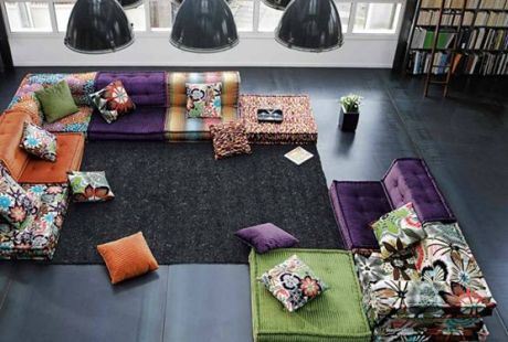 Ovo je enterijer za hedoniste - sve je meko, od jastuka i pufova do prostirki na podu i panela za zidove presvučenih tkaninom. U skladu sa njima su i sofe, stolice, lampe i niski stočići. Mešavina oblika i veličina daje atraktivne efekte, a nezaboravne su retro stolice presvučene u večiti pačvork. Pogledajte, uostalom, galeriju pa recite i sami... zar nije Misoni ponovo istkao čudesnu tapiseriju akvarela za odmor i užitak?