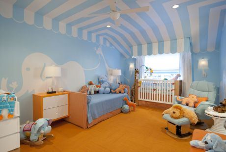 Sa plavom bojom nikada ne možete pogrešiti ako ste dobili dečaka. Umesto što ćete jednostavno okrečiti prostoriju u nežno plavu nijansu predlažemo da se slobodno opustite i budete kreativni. Iscrtajte životinje, oblike ili razmislite o tapetama na jednom od zidova.