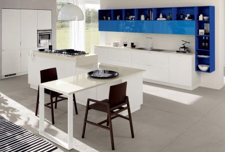 Tirkiznoplava, bordocrvena ili kombinacija više boja vrhunac su u modernom dizajnu za 21. vek, a njihova najjača tačka je savršeno uklapanje sa materijalima koji su inače rezervisani za uređenje dnevnog boravka. To je sasvim razumljivo, budući da savremeni stanovi najčešće imaju čitavu "dnevnu zonu" pretočenu u jedan prostor. Akcenat je na modernim policama za odlaganje namirnica i posuđa koje više podsećaju na police iz dnevnog boravka.