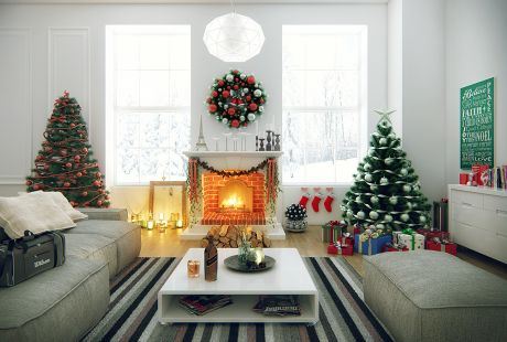 U ovom toplom domu preovladavaju ukrasi u crvenoj i sivoj boji, koji simbolično predstavljaju Deda Mraza, a mi vam savetujemo da izaberite dve omiljene boje i u tom duhu opremite stan.
