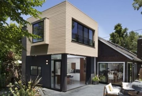 Osnova ovog lepog projekta je, zapravo, dvorišna kućica pretvorena u dupleks, a uz njega je dograđena i divna trpezarija koja zahvaljujući kosom krovu deluje vrlo luksuzno i moderno!