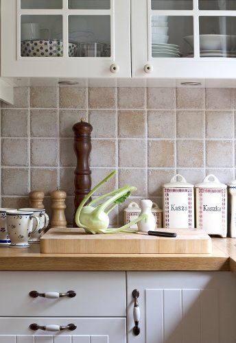 Ako renovirate staru, belu kuhinju i volite rustiku, zamenite radne površine masivnim drvenim pločama (4) i (5). Uz ubacivanje hromiranih površina, bela boja i rustično drvo imaće vrlo moderan izgled (6) i (7).