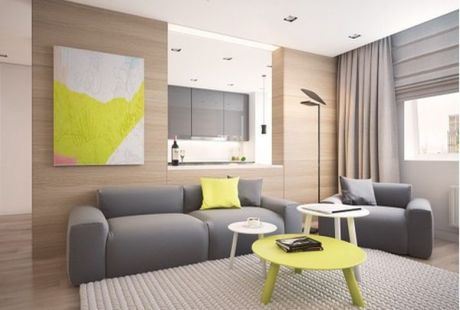 Pogledajte kako je mlada ruska dizajnerka Julija Butova uredila jedan stan tako da odiše radošću i toplinom doma. Boje je koristila pametno i strateški, kako bi nešto naglasila a nešto jednostavno obojila. Na primer, kauč je tamnosive boje, što ga čini mnogo komfornijim za korišćenje nego da je žut (svetle boje su teže za održavanje i lakše ih je uprljati, a svi volimo da sedimo i odmaramo se na kauču...).