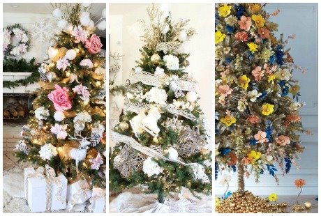 Koristili su sušeno, pravo ili ukrasno cveće od papira i tkanine, a rezultat je očaravajući! Pogledajte predloge i potražite inspiraciju za svoju jelku kao iz rajske bašte!