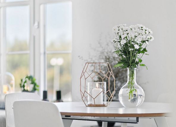 Iako je skandinavski dizajn najpoznatiji po primeni čistih belih površina, bela boja je pogodna za sve mladalačke enterijere, naročito u trpezariji i kuhinji gde dopušta da do izražaja dođu detalji.