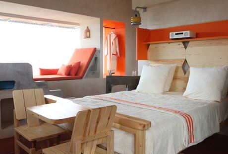 Plod kreacije i saradnje mlade francuske dizajnerke Matali Kraset s Filipom Šapleom i Patrikom Eluarijem, hotel Dar Hi predstavlja izuzetan primer nekonvencionalno uređenog hotela – u osam kula s pogledom na pustinju izgrađeno je sedamnaest raznovrsnih soba. Uklapajući moderan, urbani stil s izvanrednim prirodnim okruženjem, kreatori su – kako navode – želeli da stvore savremen, ekološki hotel koji će poštovati lokalnu arhitekturu.