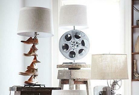 Fantastična lampa od drveta i čelika koja ima običan beložuti abažur bila bi jednostavna, klasična stona lampa da nije otkačenog detalja – sedam drvenih kalupa za muške cipele koji kao na nekom "čiviluku" vise sa njenog stuba. Efekat je još veći kada se lampa uključi te diskretnom i dekorativnom svetlošću obasja mednozlatne kalupe i tako zablista u svoj svojoj neobičnoj lepoti. Krajnje autentičnu i avangradnu lampu s "hiljadu lica" možete dobiti i tako što će se postolje napraviti od rolne s filmskom trakom, ukrasiti čajnikom i šoljama... sve zavisi od ukusa, afiniteta i... naravno, vašeg hobija!