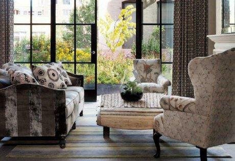 Tako je već u lobiju teško ne opaziti ogromnu čeličnu skulpturu Hajme Plensa koja reprezentuje ljudsku glavu napravljenu od slova koju okružuju stakleni prozori i sivi pod od hrasta. Soba za crtanje koja se najviše koristi kao dnevni boravak "obojena" je otmenom notom ljubičaste, crne i sive. Dok zid krase uljana platna Fransoa Barda celom prostorijom dominiraju masivne sofe urađene u pačvork dezenu. Hotelski bar koji nudi posebnu atmosferu ukrašen je dominatnom rasvetom raskošne palete iz pedesetih. Stolice i garniture od najfinijih materijala krase pruge u veselim bojama, a za umetnički efekat zaduženi su i takvi detalji kao što je afrička Asafo zastava i veličanstvena kolekcija bakelitnih vintidž telefona dopunjenih sijalicama. Zamislite da tu ispijate svoj popodnevni čaj? Osetićete se kao da ste u Londonu a ne na Menhetnu.