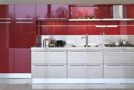 Tako za sve ljubitelje crvene kuhinje, Snajdero je osmislio "Sistema Zeta" kuhinju s lakovanim delovima u vatrenocrvenoj, skoro "krvavoj" nijansi crvene u kombinaciji sa srebrnobelim drvenim površinama i elegantnim, tankim, čeličnim ručkama u sjajnoj, srebroj boji.