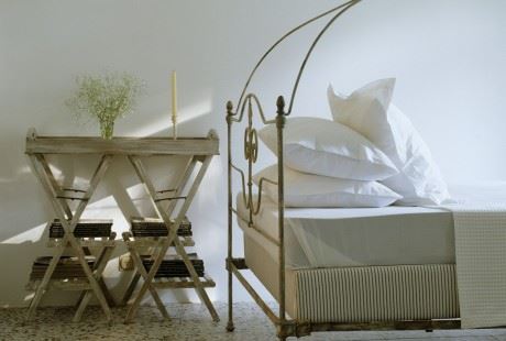 U spavaćoj sobi akcenat je na glomaznim krevetima s kovanim okvirima, diskretnoj rasveti i dodatnom nameštaju od drveta, ali i beloj posteljini. Otmena zavesa, vaza puna lala i ogledalo koje stoji naslonjeno na zid, posebno su podigli ceo prostor.
