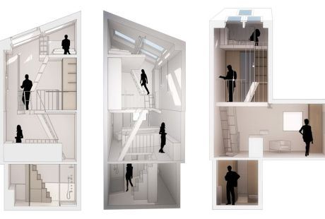 Zbog svega toga, arhitekte se u morale pažljivo da pristupe uređenju tako jedinstvenog prostora, te su krenuli od ideje da svaki od četiri sprata (uljučujući i podrum) ovog stana bude namenjen određenim fukncijama i da čitava nekretnina naliči na kulu. U podrumu se nalazi kupatilo, dok su na prvom spratu dnevni boravak i kuhinja, na drugom je radna soba, a trići sprat rezervisan je za udobnu spavaću sobu.
