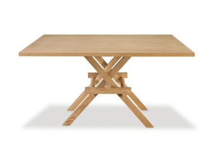 Podnožje za sto sastoji se od pažljivo konstruisanih oblih letvica koje su spojene samo uglavljivanjem, a tabla se drži zahvaljujući sili gravitacije.
