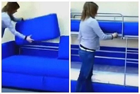 Kada se na kauču sklone jastuci koji služe kao naslon otkriva se šipka koju kada povučete odmah dobijate krevet na sprat. Kada povučete deo ispod ova dva kreveta dobićete i dva dušeka.