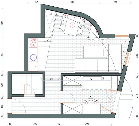 Mala kvadratura, a mnogo zahteva. Ovim predlogom pokušao sam da zadovoljim većinu vaših želja. Levo od ulaznih vrata, na račun kuhinje, formiran je garderobni plakar sa kliznim vratima i ispunom od ogledala. Veća razlika u godinama dece i njihove radne obaveze zahtevaju radoznalost, naročito pri učenju u radu. Ćerka, student, dobila je svoj radni ambijent, odvojen visokom policom od ostalog dela dnevno-trpezarijskog prostora. Sin u manjoj sobi ima svoj krevet i radni sto. Duž zida koji razdvaja dečju od dnevne sobe nalazi se kombinovani plakar sa kliznim vratima. Njegov središnji deo namenjen je televizoru, knjigama i slično, dok su bočni delovi predviđeni za odlaganje garderobe.