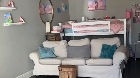Srce ovog doma je dnevna soba – svetla, topla i pažljivo osmišljena da odgovori na potrebe troje dece različitog uzrasta. Sa zadnje strane udobnog kauča nalazi se krevetić na sprat, smešten tik uz zid, gde spavaju dvoje starije dece. Beba spava u svom krevecu, ali ipak u okviru istog prostora.