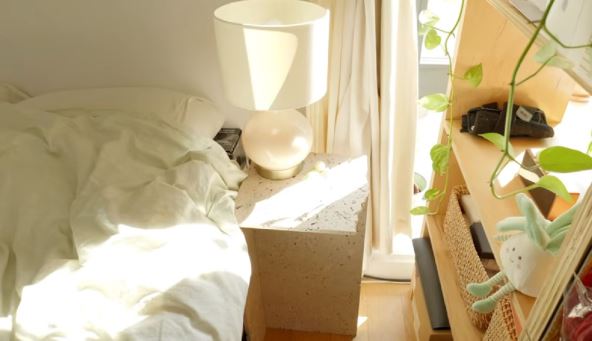 Stan ima i retke pogodnosti za Njujork – mašinu za pranje i sušenje veša u samom stanu, kao i veliki prozor okrenut ka jugu, koji propušta obilje svetlosti. Vertikalni prostor iskorišćen je maksimalno: police na vratima, šipke za odeću i pametno raspoređene kutije čine da svaki centimetar ima svoju funkciju.