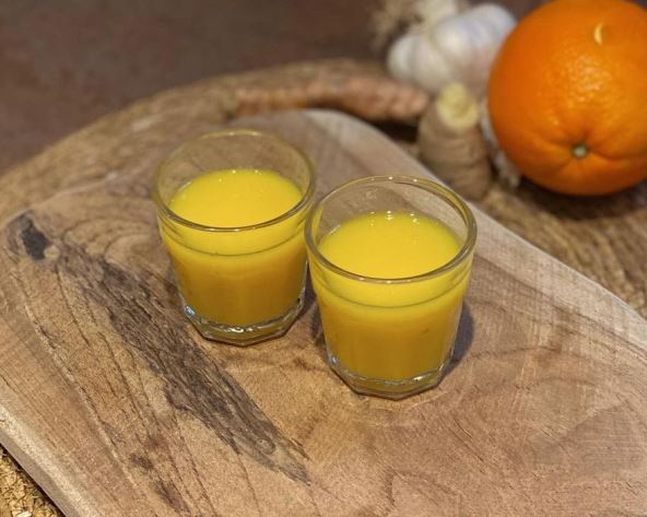Glavni dodatak ovog napitka je limun, takođe značajan zbog antivirusnog dejstva i brojnih antioksidanata. Med je tu da ublaži ukus i ljutinu đumibira, ali ima i antibakterijska svojstva. Jednom rečju, imaćete pravu "bombu" za jačanje imuniteta. Možete pripremiti količinu dovoljnu za nedelju dana, ali napitak držite u dobro zatvorenoj staklenoj boci, u frižideru.