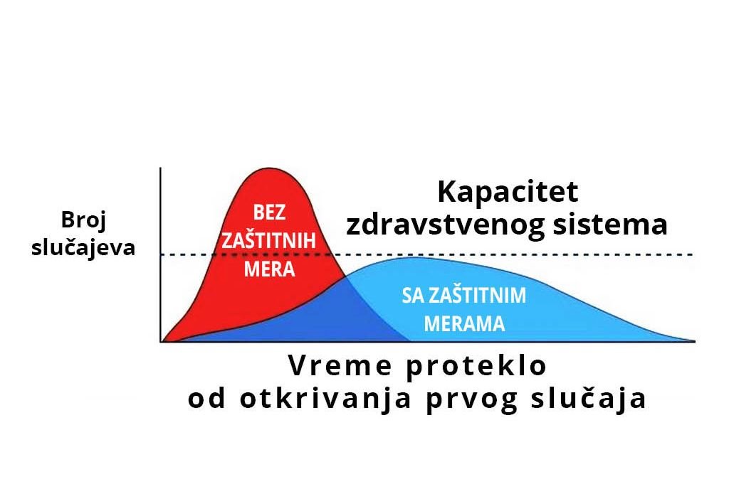 Na našem sajtu možete da pročitate mnogo informacija o tome kako vi lično možete da doprinesete smanjenju ove krivine na grafikonu - plavo polje označava kako se smanjuje pritisak na zdravstveni sistem ako se budemo svi ponašali odgovorno.