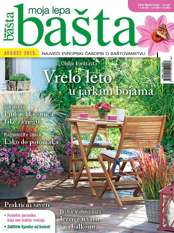 Novi broj časopisa Moja lepa bašta u prodaji: kako da uživate u letnjim baštama u jarkim bojama (AVGUST 2016)