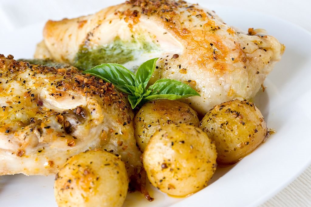 PILETINA SA KROMPIROM, POVRĆEM I PESTO SOSOM: pečeno pile uz bogat prilog (RECEPT)