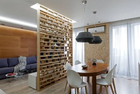 Ideja za uređenje doma: pregrada od letvica razdvaja trpezariju i kuhinju od dnevnog boravka