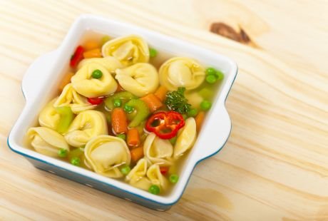 Topla supa sa povrćem i punjenom testeninom